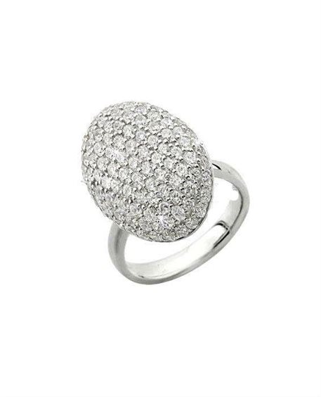 ANELLO COLLEZIONE BRILLANCE A PAVE' OVALE DI ZIRCONI BIANCHI MM 19 X 16 , PESO GRAMMI 7,5. GAMBO TONDO COMFORT MM 3,60. MISURA DEL DITO 19