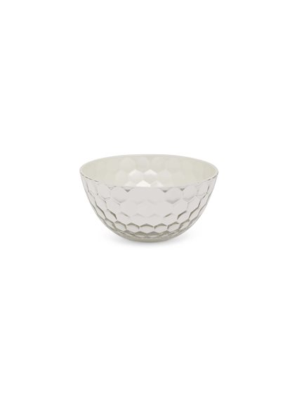 ciotola lavorazione a nido d' ape vetro interno argento esterno altezza cm 11 diametro cm 24. colore sabbia internamente e colore argento esternamente. solo ciotolaLinea VERONA/OPTIK (incamiciata) di Argenesi. Questa ciotola è completamente realizzata in vetro. La parte interna del prodotto viene dapprima ricoperta in puro Argento 999 (così da poter vedere l’effetto del metallo prezioso dall’esterno, attraverso la superficie trasparente delle pareti), poi la superficie argentata viene superficialmente decorata in color oro per ottenere un effetto colorato lucido. Un complemento per arredare elegantemente gli ambienti interni della casa o dell’ufficio, ma non solo. Adatto anche come prezioso articolo da regalo.