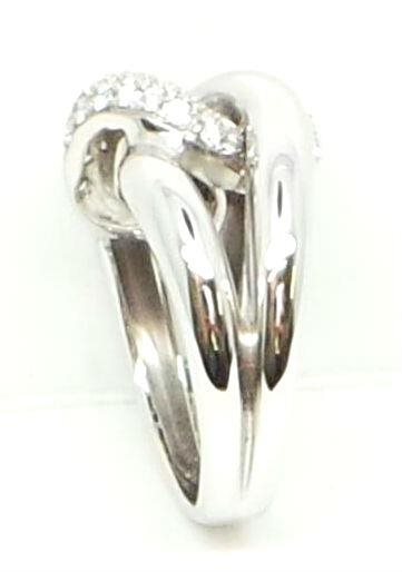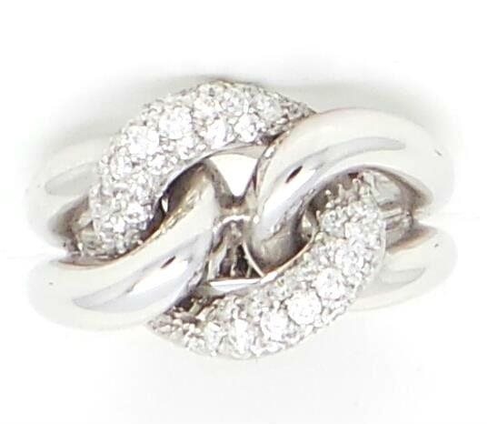 ANELLO IN ORO BIANCO 750/°°° IN FANTASIA GRUMETTA TEMPESTATO DA UN PAVE' DI BRLILLANTI PER KT 0.60 COLORE G PUREZZA VS ,LARGHEZZA DEL CENTRALE ANELLO MM 14 . LARGHEZZA GAMBO SOTTO MM 4 . PESO GR 10,4. TUTTO CON CERTIFICATO DI GARANZIA