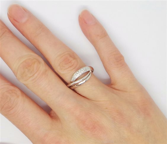 ANELLO IN ORO BIANCO LUCIDO A FORMA DI FASCETTA IN FANTASIA CON INCASTONATI DEI BRILLANTINI ,LARGHEZZA FASCETTA MM 8.5 , IL GAMBO SOTTO MISURA MM 3 . TUTTO CON CERTIFICATO DI GARANZIA