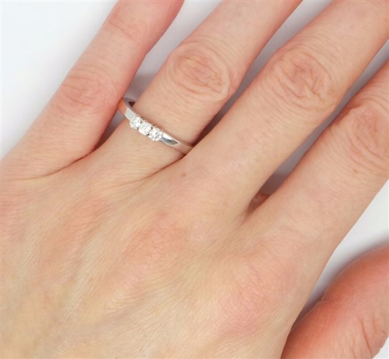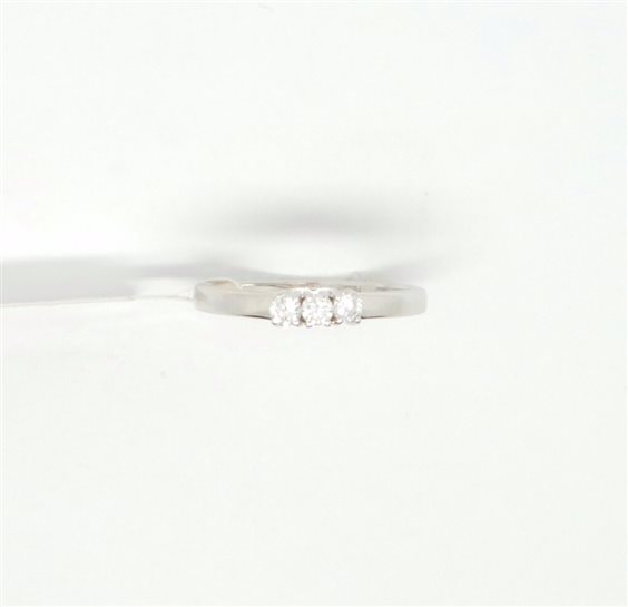 ANELLO trilogy in oro bianco con 3 diamanti montati a quattro punte misure del castone larghezza e lunghezza mm 3.30 x 7.70 altezza mm 4.5 . Gambo larghezza mm 2.4. Certificato di garanzia allegato. Regalo ideale per la persona che ami