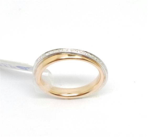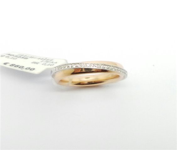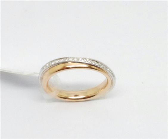 FEDE IN ORO ROSSO CON DOPPIO GIRO IN ORO BIANCO INCASTONATI NELLA PARTE CENTRALE DEI DIAMANTI LARGHEZZA MM 3.7 COMODA INTERNAMENTE .REALIZZABILE IN TUTTI I COLORI DELL'ORO CON O SENZA DIAMANTI LUCIDA O SATINATA IN 10 GIORNI LAVORATIVI. CERTIFICATO DI GARANZIA