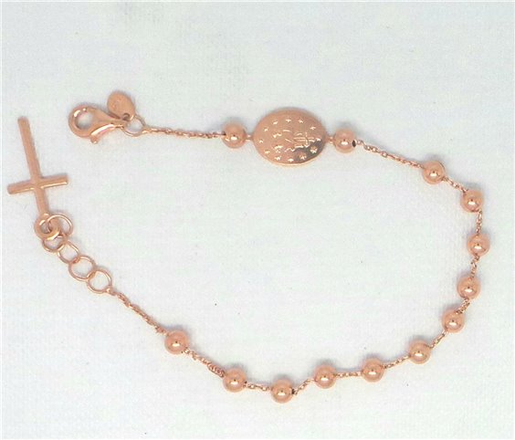 bracciale oro rosa lucido 18 carati, disponibile anche in oro giallo lucido, a rosario, mm delle palline 4 n13, croce nella parte finale . lunhezza cm 19 peso gr5,6