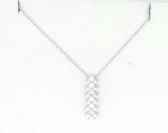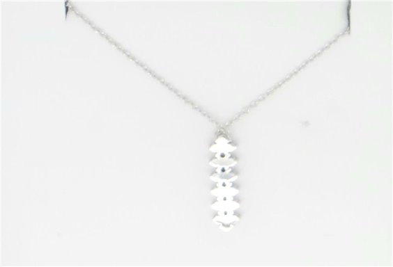 collier oro bianco 750% catena lavorazione rollo' cm 45 con possibilita' di accorciare con anellino inserito. Pendente FATTO A MANO MISURA ( MM 19 X 6 SPESSORE 4 ) tempestato di diamanti taglio brillanti per kt 0,42 certificati. colore F purezza VVS2. GR TOTALE 5.