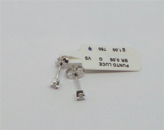 Orecchini in oro bianco con diamanti in taglio brillante incastonato a griffe ,successivamente le estremità dei fili metallici sono battute al fine di fissare le pietre al gioiello. Per concludere il lavoro le sporgenze vengono levigate e lucidate al fine di garantire il massimo impatto estetico. Generalmente le griffe impiegate nel fissare le pietre sono 4 . misura del cestino quadro mm 2.9 x 2.9. Misura del perno mm 11 .Prodotto con certificato di garanzia.