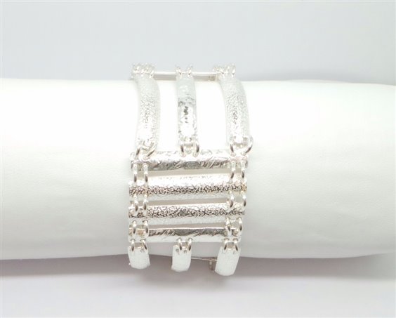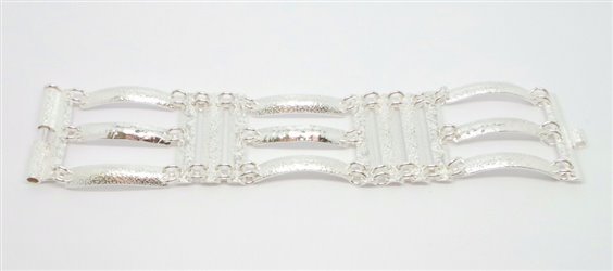 meraviglioso bracciale di alta manifattura in argento 925‰ naturale g.43.5 - cm.17.5 x larghezza cm 3 , lavorazione artigianale martellata lucida e satinata , chiusura con chiodo a scomparsa . certificato di garanzia e di autenticita'