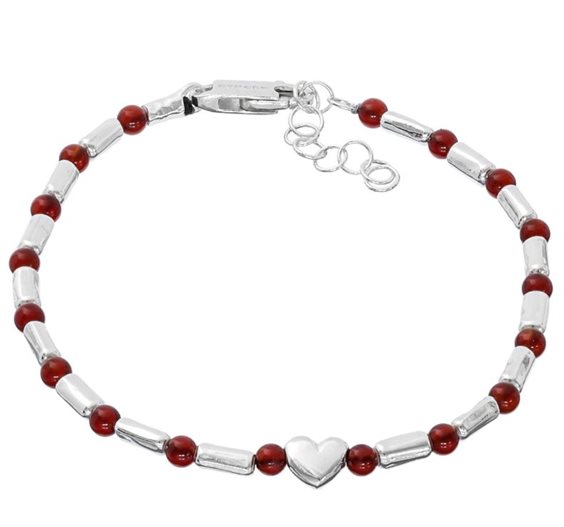 bracciale in argento naturale 925‰ soggetto cuore con agata rossa gr.4,5 La raffinatezza di un look minimal, perfetto equilibrio tra casual e classe. La linea Brividi è composta da piccoli bracciali realizzati a mano, per risplendere quotidianamente.