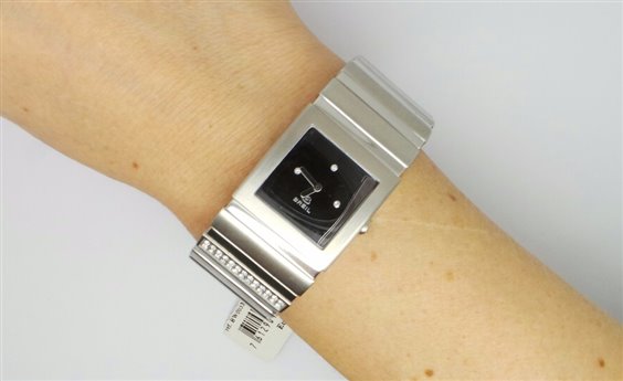 OROLOGIO IN ACCIAIO CON MOVIMENTO AL QUARZO ,VETRO MINERALE ,FONDELLO SERRATO A VITE , BRACCIALE CON ELEMENTI SWAROVSKI ,POSSIBILITA' DI ESSERE ACCORCIATO.