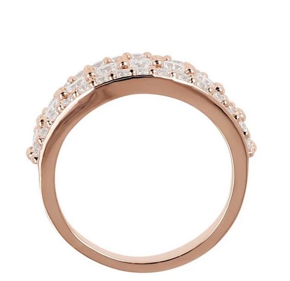 Anello comfort fit tre file in Golden Rose placcato oro rosa 18 Kt con ricche file dal design moderno e accattivante in preziosi cubic zirconia. Design brevettato e eleganza garantita dal marchio Bronzallure. Ideale ogni giorno per brillare con stile. Orecchini e collana coordinati disponibili nella stessa collezione • Lega brevettata Golden Rose • Placcatura oro rosa 18 carati • Cubic Zirconia • Designed & Made in Italy • Nickel free, cadmium free, ipoallergenico Share