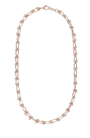 Una collana lunga con un tocco di modernità: la classica maglia rolò è alternata ad anelli tondi in Golden Rose placcato oro rosa 18 carati. Un gioiello originale con un design 100% made in Italy. Abbina questa collana con pratica chiusura a moschettone ai bijoux Purezza coordinati sul nostro e-commerce. • Lega brevettata Golden Rose • Placcatura oro rosa 18 carati • Pietre naturali certificate • Designed & Made in Italy • Nickel free, cadmium free, ipoallergenica • Lunghezza: 63,50 cm