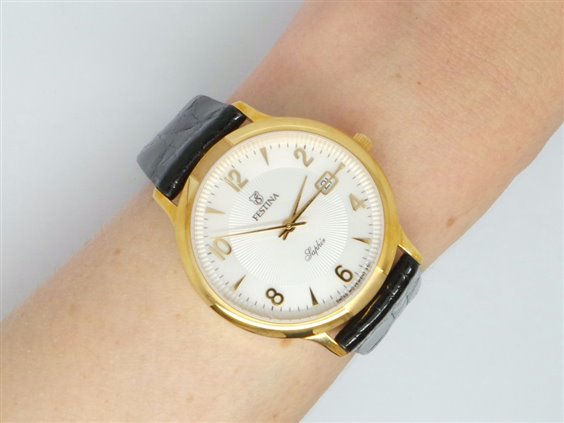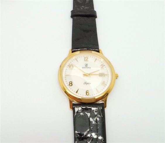 OROLOGIO IN ORO GIALLO 18 KT CON MOVIMENTO SVIZZERO AL QUARZO CON DATARIO , CASSA IN ORO.QUADRANTE BIANCO. CORONA E FONDELLO SERRATE A SCATTO . VETRO ZAFFIRO . CINTURINO IN COCCODRILLO STAMPATO NERO . TUTTO CON CERTIFICATO INTERNAZIONALE DI GARANZIA SIA PER ORO CHE PER OROLOGIO. LUNGHEZZA TOTALE OROLOGIO CM 24,5