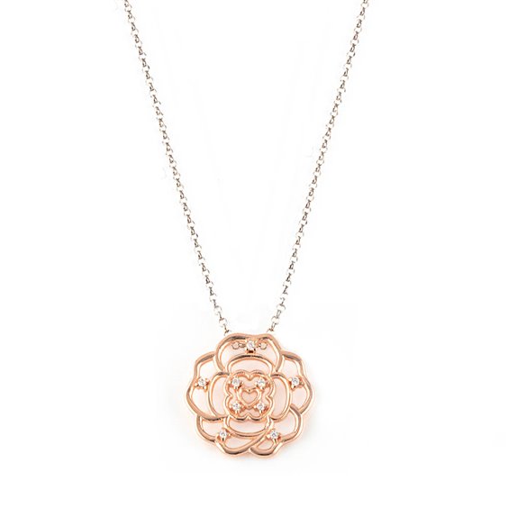 Collana, mini rolò diamantata, Camelia placcata oro rosa con punti luce. Lunghezza: 33 – 45 cm. Argento 925 Made in Italy.