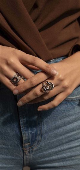 anello a fascia a forma di 2 nodi bicolore bianco e rosa