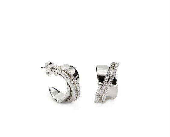 Irregular design hoop earrings with a double zirconia rail. This elegant jewel will be your ally for everyday looks; it will accompany you in your day to day. Irregular design hoop earrings with double zirconia rails, a must-have in your jewelry box!
