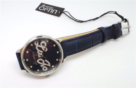 Orologio Liujo ( liu-Jo), Collezione: Laila Blu, movimento: al quarzo Miyota Cal. 2039 , funzioni: ore, minuti, secondi. cassa: diametro 38 mm in acciaio, ghiera e corona in acciaio, vetro minerale ad alta resistenza. impermeabilità: 3 atmosfere. quadrante: con fnitura soleil con cristalli bianchi per logo e indici. cinturino: in pelle stampa cocco con fbbia in acciaio personalizzata. Disponibile anche in IP oro rosa. . Novità Settembre 2014, Catalogo Fall-Winter 2014, Referenza: TLJ77
