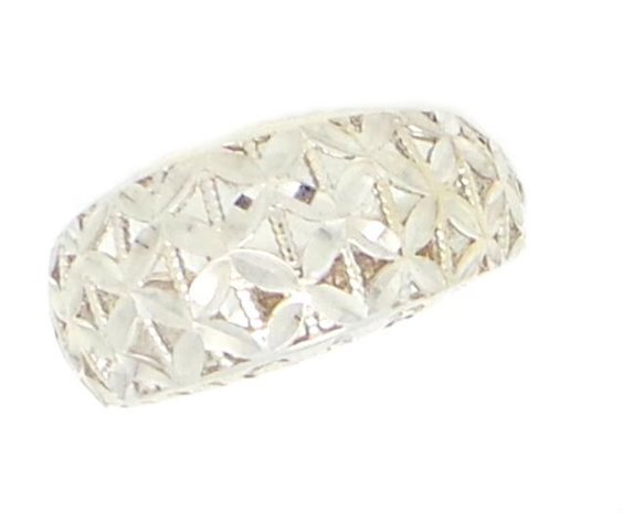 Anello in oro bianco 18 carati a forma di fascia di larghezza nel punto piu' largo di mm 11 , lavorazione diamantata by Lorenzo Ungari , logo da un lato inciso a laser, grammi 4,6.