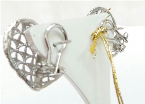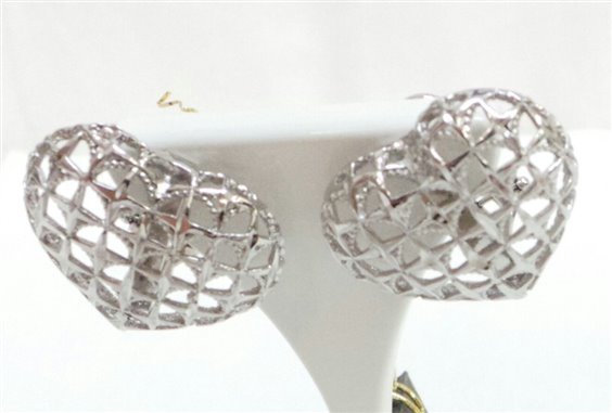 orecchini in bronzo argentati a forma di cuore lavorazione artigianale traforata ,chiusura con perno e molla misura dell'orecchini mm 22,5 larghezza x 20 altezza. certificato di garanzia