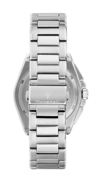 L’orologio Maserati della collezione Velocità con funzione cronografo unisce eleganza sportiva e carattere deciso, pensato per chi desidera un accessorio performante dal design distintivo. La cassa solida e il bracciale in acciaio lucido esprimono robustezza e versatilità, adatti a ogni occasione. Il quadrante bianco dona luminosità all’insieme e mette in risalto i contatori cronografici neri, che aggiungono un tocco di dinamismo e ne migliorano la leggibilità. Completano il look la lunetta tachimetrica nera e il datario posizionato a ore 4, per uno stile che non passa inosservato. Con un'impermeabilità fino a 100 metri. Cod R8873652013