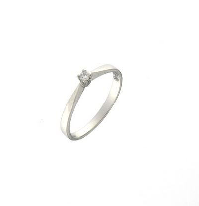 ANELLO SOLITARIO CON DIAMANTE KT 0,04 MONTATO A 4 PUNTE MISURA MM 2,9 X 2,9 SPESSORE DEL GAMBO MM 2,3 . ACCOMPAGNATO DA CERTIFICATO GEMMOLOGICO E ASSICURATO PER SCIPPO E RAPINA PER UN ANNO