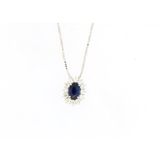 Girocollo Mirco Visconti in oro bianco 18kt con Zaffiro blu taglio ovale ct 0,58 provenienza KANCH e contorno di diamanti ct 0,25 G Vs. misura totale mm 10 x 9 . fornito con certificato di autenticita' e garanzia