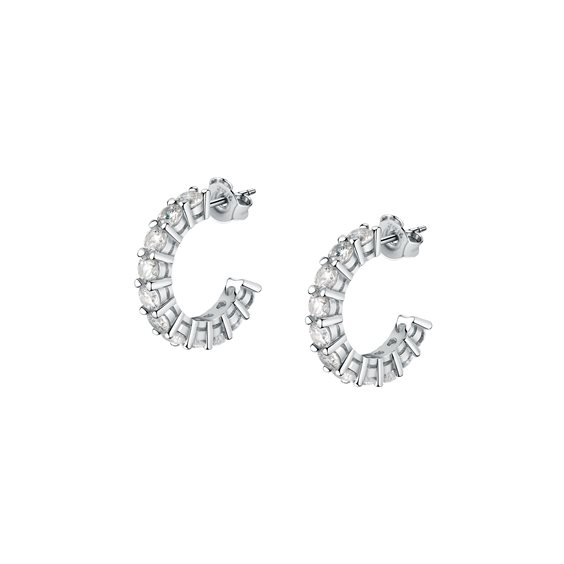 Orecchini Donna Morellato Collezione Tesori in argento. Misura Diametro 16mm. Materiale: Argento 925‰, Gemme, Peso: 4 gr. Pietre: Zirconi diametro 4mm. Chiusura a perno con tappi a farfalla. Certificato di autenticità e Scatola Originale Morellato.
