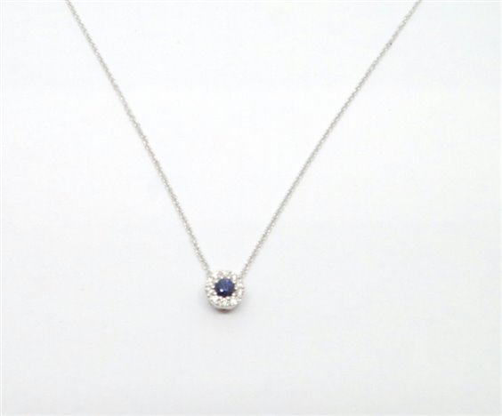 collana in oro bianco lavorazione rolo di lunghezza cm 45 regolabile con zaffiro e contorno di diamanti circonferenza del centrale mm 6 spessore mm 3,8 . certificato di garanzia per diamanti e dello zaffiro.