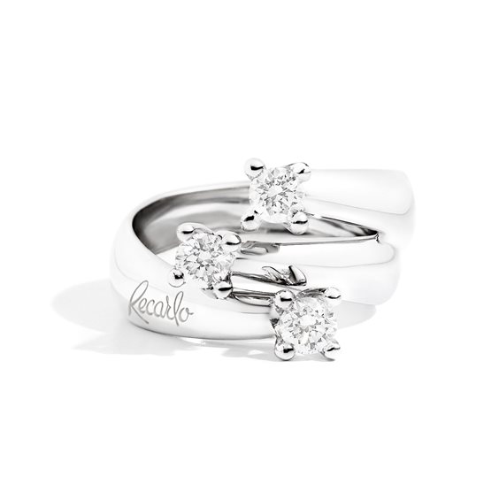 ANELLO TRILOGY ORO BIANCO 750/°°°COLLEZIONE' ETERNITY' con tre diamanti per kt 0.60 colore E purezza VVS1 LARGHEZZA MASSIMA DI LAVORAZIONE MM. 13.50 misura DITO 14. LARGHEZZA GAMBO SOTTO MM 7.70. CERTIFICATO GEMMOLOGICO DELLE PIETRE IN MICRO FILM.LOGO INCISO A LASER SUL LATO ESTERNO, PUNZONE INTERNO SECONDO NORMATIVE. IL MADE IN ITALY RECARLO E' SINONIMO DI ESPERIENZA, MAESTRIA ED ESCLUSIVA LAVORAZIONE A MANO DI OLTRE 45 ANNI , CON DIAMANTI SELEZIONATI. CERTIFICATO DI GARANZIA E CONTRO FURTO/ RAPINA CON VALIDITA' DI un ANNo.