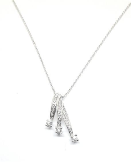 COLLANA IN ORO BIANCO CON LAVORAZIONE ROLO CON PENDENTE TRILOGY KT0.44 LA MISURA DEL PENDENTE CM 5,5 X 1,5 .LA CATENA HA TRE REGOLAZIONI DI MISURA DA CM 40/1/42/45 CONSEGNATA CON CERTIFICATO GEMMOLOGICO E DI GARANZIA