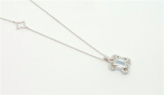 collana in oro bianco lavorazione rolo con possibilita' di essere regolata la lunghezza ,centrale con acquamarina taglio smeraldo di kt 2.37 impreziosita da diamanti per kt 0.16 colore f purezza vs. il centrale misura totalmente mm 9 x 11 , spessore mm 5.4. tutto con certificato e garanzia recarlo