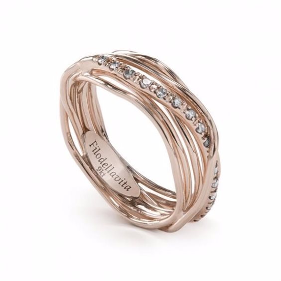 Anello Filodellavita Classic Collection, 7 Fili in Oro Rosa 9kt e 16 Diamanti Brown 0.18ct Rendilo ancora più tuo personalizzando la targhetta interna incidendo una data o un nome