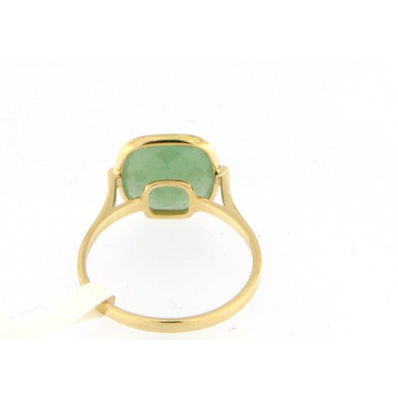 anello in oro giallo con gambo sottile e pietra quadrata sfaccettata di misura mm 5 x 5 .misura dito 14