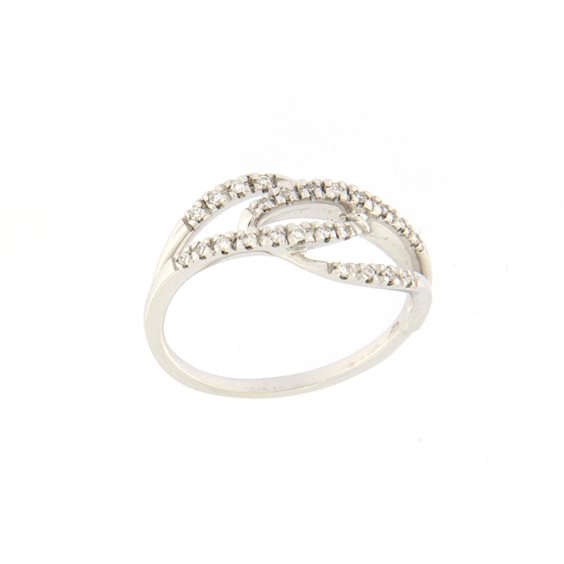 anello oro bianco in fantasia con diamantini incastonati .la parte centrale misura di larghezza mm 8,3.il gambo scende in scalare sottile . certificato di garanzia