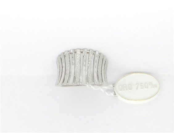 anello in oro bianco di design con lavorazione diamantata e satinata ,fascia di larghezza  mm 15 ,gambo sotto misura mm5.3 , misura dito 17.