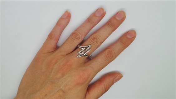 ANELLO TUTTO ORO BIANCO CON FANTASIA DI ZIRCONI NELLA PARTE CENTRALE CON MISURA MM 24 DI LAVORAZIONE ,GAMBO ROBUSTO DI LARGHEZZA MM 3