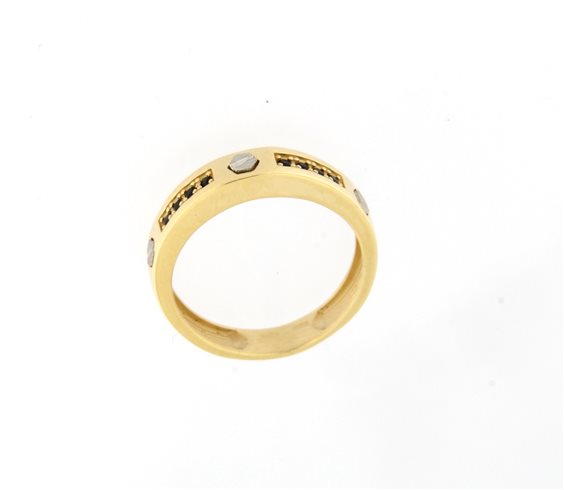 anello uomo tutto oro con lavorazione centrale zirconi neri e viti in oro bianco larghezza di lavorazione mm 5,2 larghezza uniforme .misura 21
