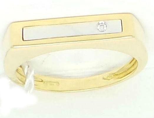 ANELLO DA UOMO IN ORO 750/°°° GIALLO CON RIPORTO SOPRA IN ORO BIANCO CON INCASTONATO UN DIAMANTE IN TAGLIO BRILLANTE KT 0.01 G/VS . LA PARTE SUPERIORE MISURA L. MM 20 X 5 LARGHEZZA. IL GAMBO SOTTO LARGHEZZA MM 3 MISURA DITO 23 , CON POSSIBILITA' DI MESSA A MISURA . PESO GR 6.2