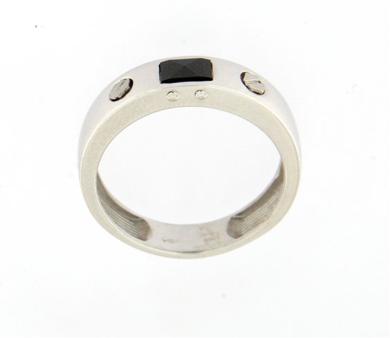 anello oro bianco con piccola pietra nera uniforme di larghezza mm 5,4. misura 21