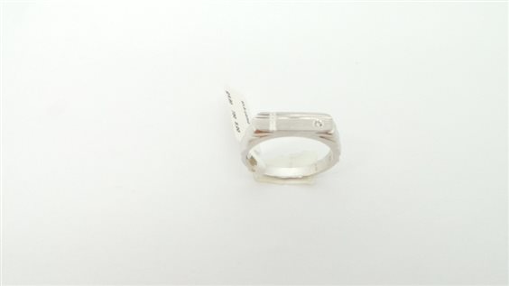 ANELLO IN ORO BIANCO LUCIDO CON PARTE CENTRALE SATINATA LARGHEZZA MM 5.1 CON DOPPIA RIGA LUCIDA ,DIAMANTINO LATERALE ,GAMBO OPERATO LATERALMENTE DI LARGHEZZA MM 4,4