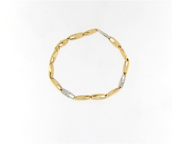 bracciale in oro giallo a maglie di larghezza mm 5 peso gr 8,5 lunghezza cm 19 , maglie impreziosite da zirconi in oro bianco