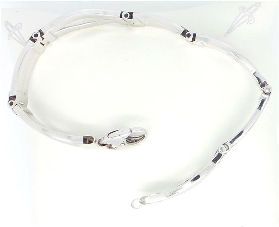 Bracciale in Oro Bianco 18 ct, maglia a segmenti, lunghezza massima bracciale 18,5, peso 14,3 g. larhezza elemento punto largo cm1 punto piu' stretto cm 0,62.LA CHIUSURA RIPORTA PUNZONE E LOGO SECONDO LE NORMATIVE . TUTTO CON CERTIFICATO