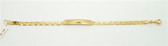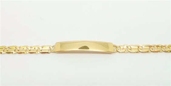 BRACCIALE IN ORO LUCIDO A MAGLIA PIENA LARGHEZZA MM 4.3 SPESSORE MM 1, CON PIASTRA CENTRALE LUCIDA DOVE POTER INCIDERE SIA SOPRA CHE NELLA PARTE SOTTO LUNGHEZZA PIASTRA CM 3 CIRCA , CHIUSURA CON MOSCHETTONE . TUTTO CON CERTIFICATO DI GARANZIA.