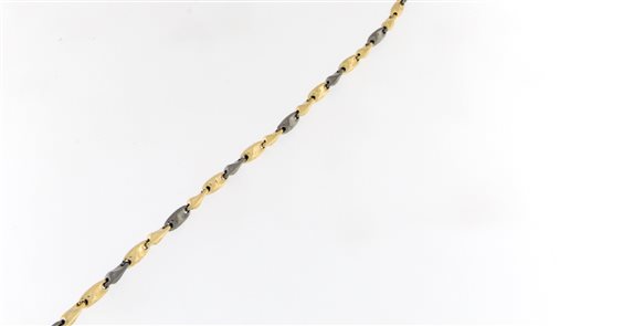bracciale a maglia rotonda tutto in oro giallo e oro nero diametro spessoree della maglia mm 3,5 peso gr 5,10 cm 20