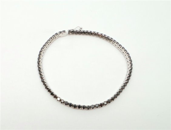 BRACCIALE IN ORO BIANCO CON ZIRCONI NERI INCASTONATI A 4 PUNTE LARGHEZZA PIETRA MM 2.52 ,ALTEZZA MM 3.40 , LUNGHEZZA CM 19.5 . CHIUSURA CON SICUREZZA .PUNZONE SECONDO NORMATIVE