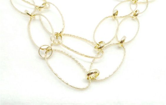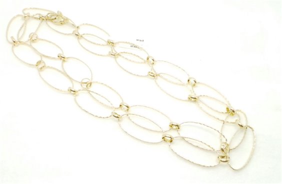 catena in argento dorato lavorazione godronata a filo lunghezza totale cm 90 .larghezza degli anelli mm 13. chiusura con moschettone