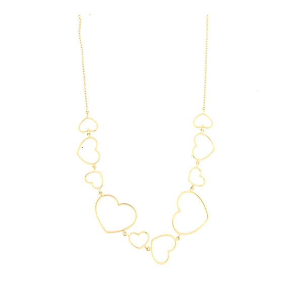 collana rifinita artigianalmente con cuori a filo tondo assimetrici misura del cuore piu' grande mm 17 x 20. certificato di garanzia.