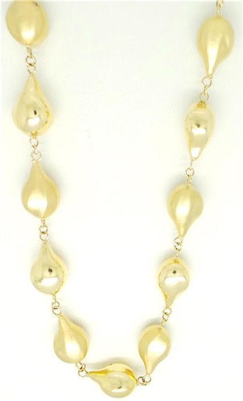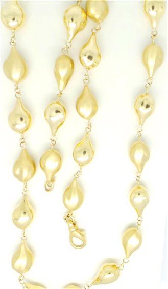 COLLANA in oro 18 CARATI LUCIDA E SATINATA ,LAVORAZIONE CON SFERE A FORMA DI GOCCIA ø MM 8,8, LUNGHEZZA DEL GIROCOLLO CM 58 PESO GRAMMI 28.8 CHIUSURA CON MOSCHETTONE