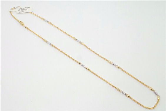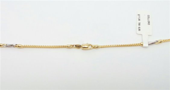 COLLANA IN ORO GIALLO MASSICCIA SQUADRATA DI DIAMETRO MM 2.4 IDEALE PER CHI VUOLE UN PRODOTTO ROBUSTO DA INDOSSARE TUTTI I GIORNI , INTRAMEZZI IN ORO BIANCO LUCIDO .CHIUSURA CON MOSCHETTONE LOGO E PUNZONE INCISO SECONDO NORMATIVE .TUTTO CON CERTIFICATO DI GARANZIA. RIFINITA A MANO