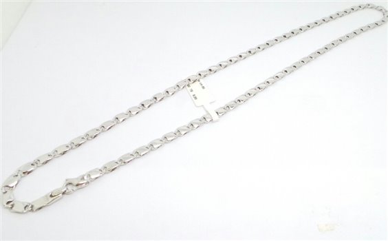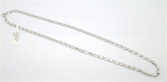 collana unisex in oro bianco in fantasia tutta lucida larghezza lavorazione mm 4,2 spessore mm 2 lunghezza cm 50. chiusura con moschettone . certificato di garanzia e punzone inciso