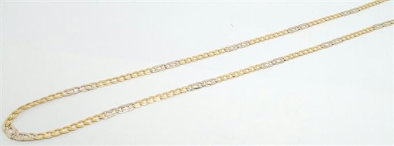 catena in oro giallo e bianco lavorazione piatta larghezza mm 3,5 massiccia chiusura con moschettone . certificato di garanzia
