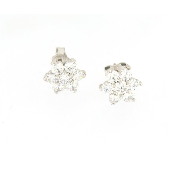 orecchini in argento con zirconi di alta qualita' a forma di fiore con perno e farfallina con diametro totale mm 10. certificato di garanzia